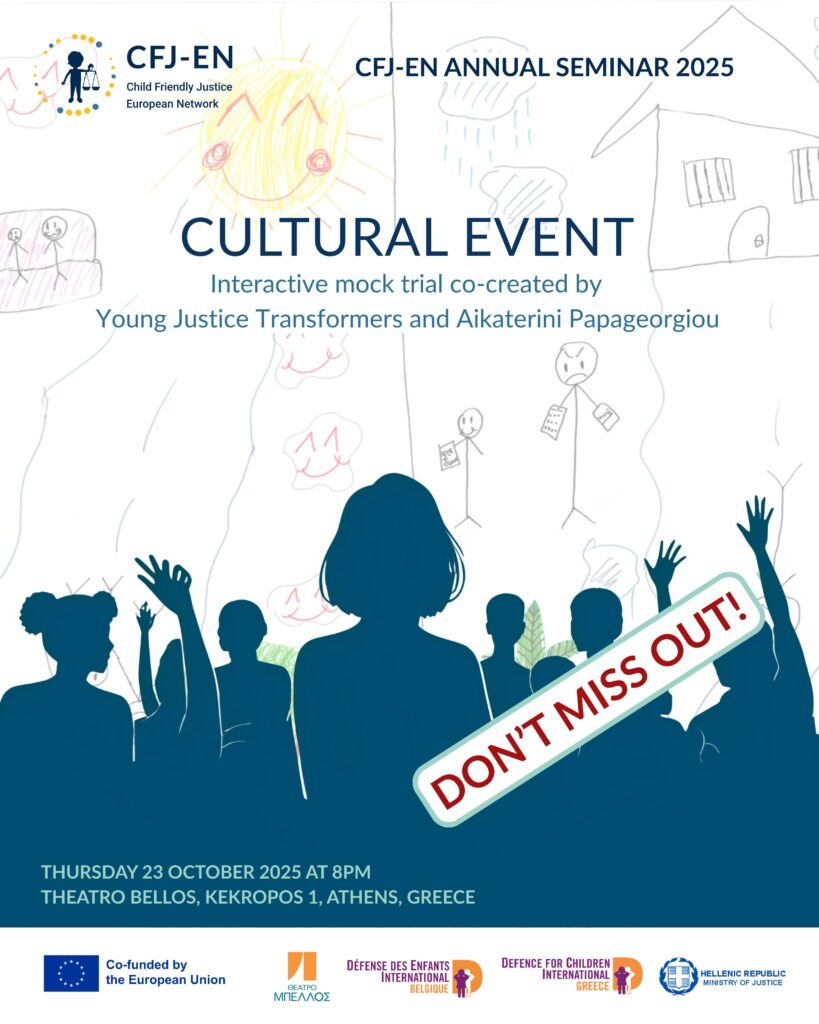 Η Defence for Children International Greece (DCI Greece) και το Child Friendly Justice European Network (CFJ-EN) συνδιοργανώνουν το 4ο Ετήσιο Συνέδριο του Δικτύου, με την υποστήριξη του Υπουργείου Δικαιοσύνηςστις 23 και 24 Οκτωβρίου 2025, στην Αθήνα.