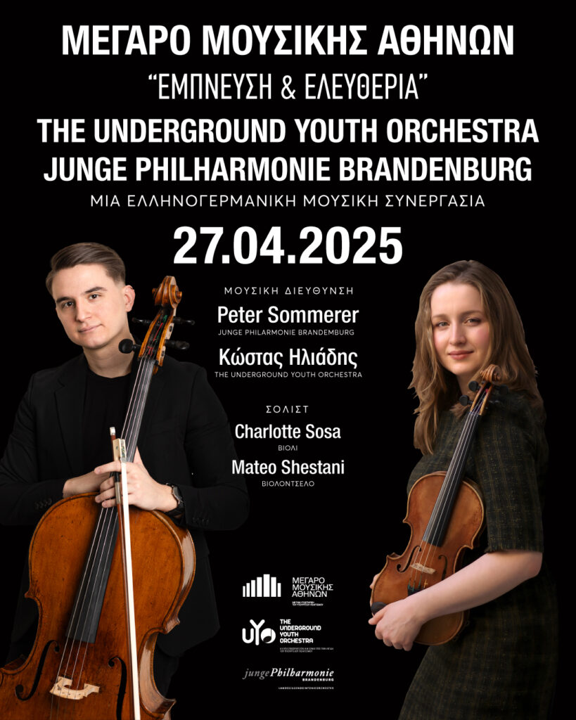 Η Underground Youth Orchestra και η Junge Philharmonie Brandenburg, δύο από τις πιο δυναμικές ορχήστρες νέων της Ευρώπης, ενώνουν τις δυνάμεις τους για μια μοναδική συναυλία στο Μέγαρο Μουσικής Αθηνών (Αίθουσα Χρήστος Λαμπράκης), την Κυριακή 27 Απριλίου 2025.