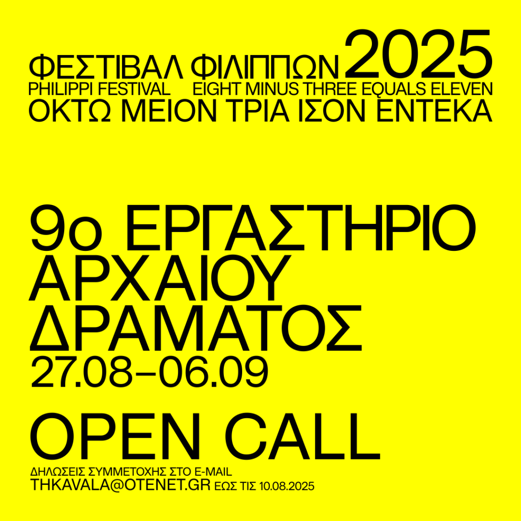 Το 68ο Φεστιβάλ Φιλίππων, εντάσσει και φέτος στις συνολικές του παρουσιάσεις έναν πολύ σημαντικό θεσμό, που τα τελευταία χρόνια δίνει μια νέα πνοή στην ευρύτερη περιοχή του Αρχαίου θεάτρου, το 9ο Εργαστήριο Αρχαίου Δράματος. Ένα ερευνητικό δημιουργικό camp που διεξάγεται στην περιοχή των Κρηνίδων, και τοποθετεί στο κέντρο του την όλη διαδικασία της μάθησης, επιτρέποντας συνολικά ένα νέο ανανεωτικό βλέμμα πάνω στο Αρχαίο Δράμα. Δίνοντας και φέτος μεγαλύτερη έμφαση στη διδασκαλία και στην έρευνα και λιγότερη στο τελικό αποτέλεσμα, καλεί τέσσερις καταξιωμένους σκηνοθέτες-